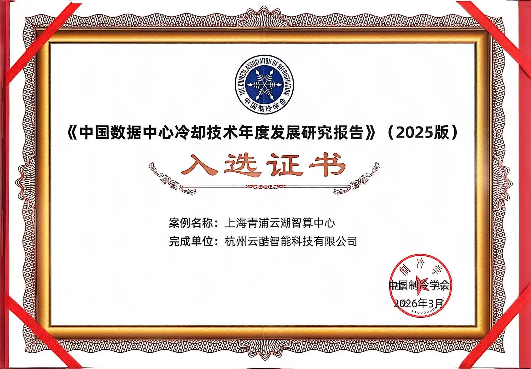 凭借在液冷领域卓越的技术创新力与深厚的行业实践,云酷智能成功入选了《中国数据中心冷却技术年度发展研究报告》(2025版)